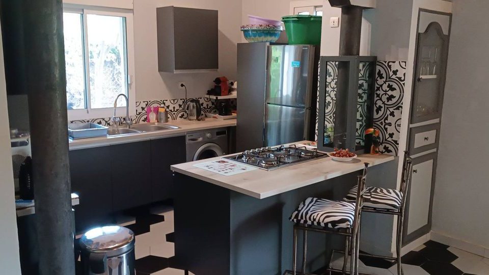 Large bright living room☀️with recent air conditioning and modern American kitchen🍽️fully equipped (dishwasher, washing machine, microwave and traditional oven)